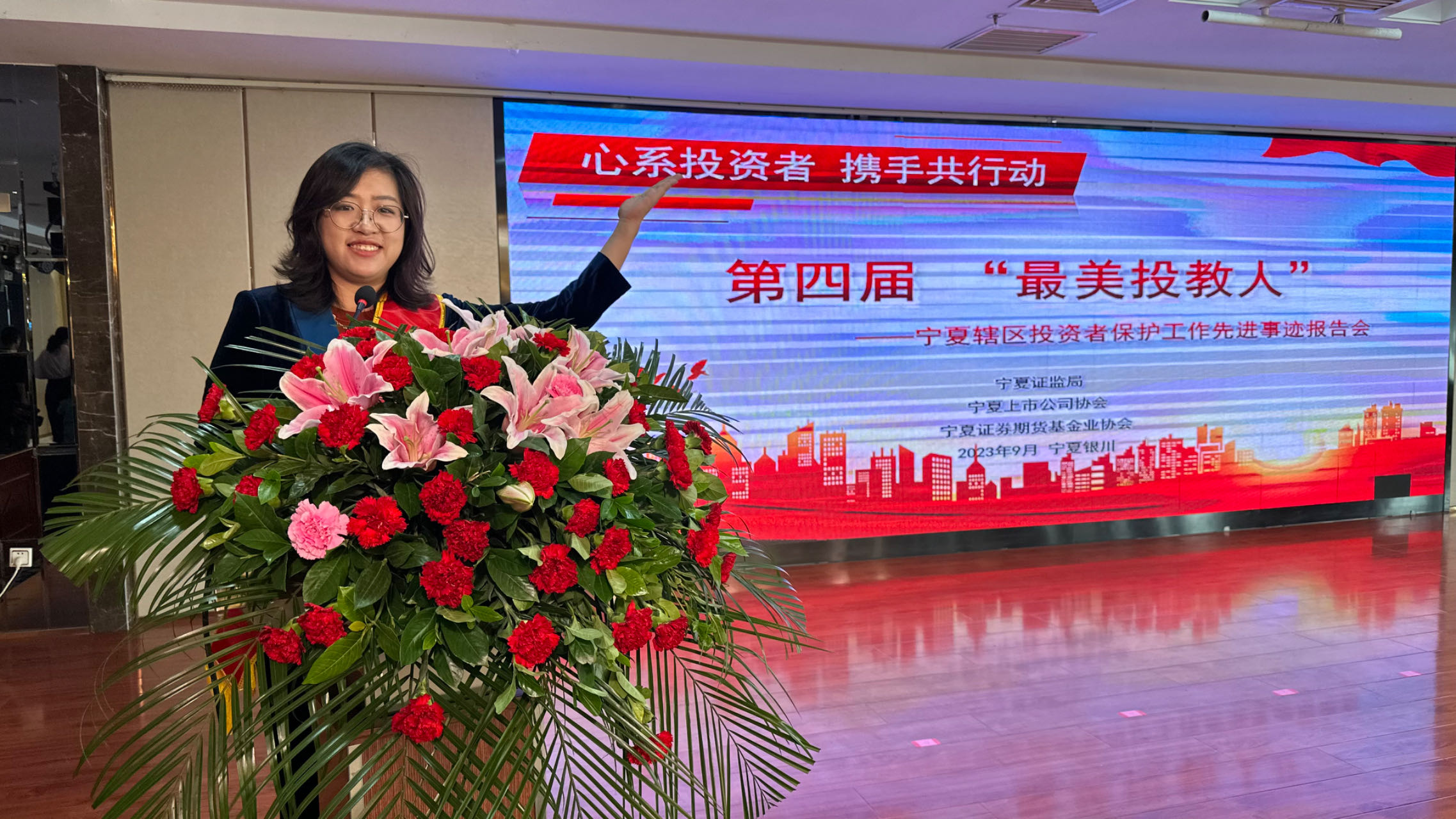 为深入贯彻落实投资者保护工作,培育理性投资文化,9月19日下午,在宁夏证监局的指导下,宁夏证券期货基金业协会、宁夏上市公司协会联合举办第四届“最美投教人”宁夏辖区投资者保护工作先进事迹报告会。宁夏证监局、中国人民银行宁夏分行、国家金融监督管理总局宁夏监管局、自治区地方金融监管局及辖区投资者、证券期货经营机构、上市公司、新闻媒体代表共计150余人参加。