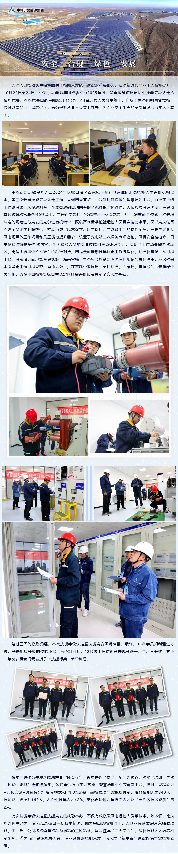 中铝宁夏能源集团创新开展风力发电运维值班员技能等级认定 打造高素质产业工人队伍